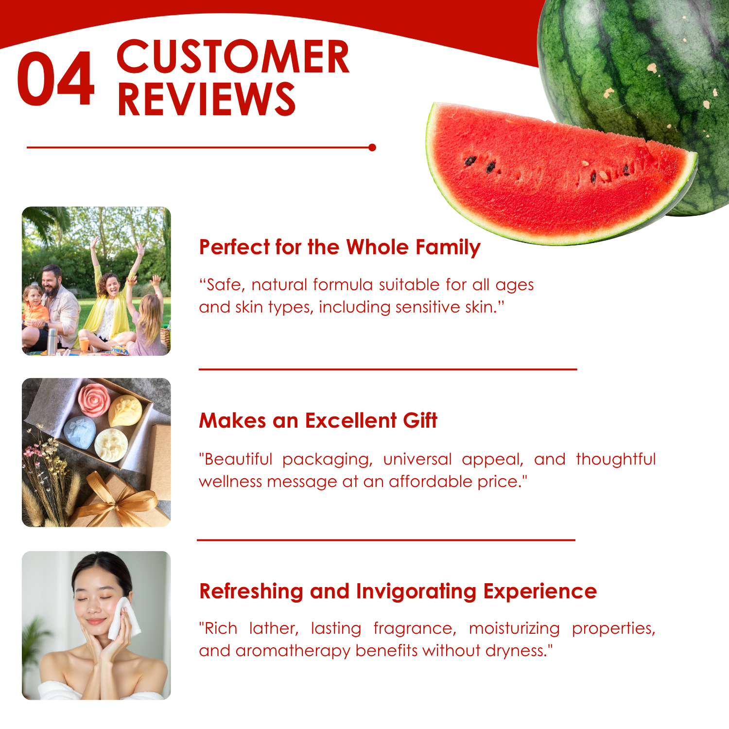 Invigorating watermelon scent that energizes your morning routine and leaves a subtle, refreshing fragrance that lasts throughout the day.