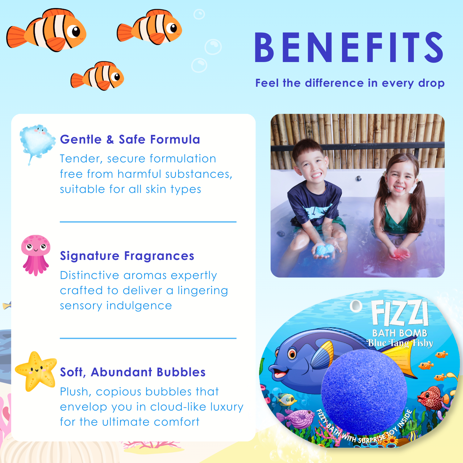 Calming azure fizzing patterns that transform your bath into a peaceful blue tang deep ocean sanctuary
