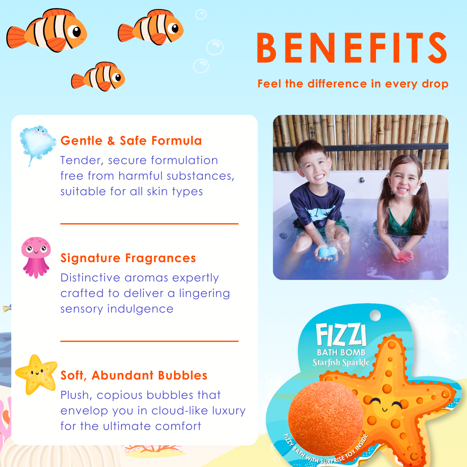 Our passion for natural bath products drives us to create radiant bath bombs using the finest ingredients, bringing you the stellar spirit of ocean creatures and vibrant coastal adventures in every starfish sizzle experience.