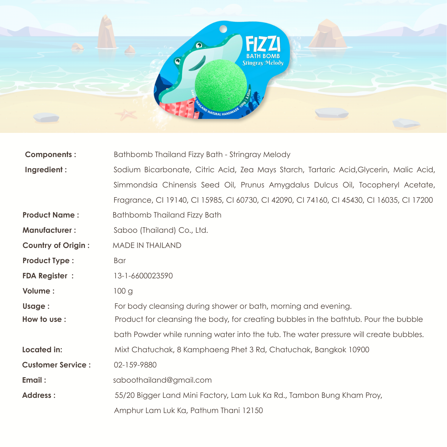 Factory Address: 55/20 Bigger Land Mini Factory, Lam Luk Ka Rd., Tambon Bung Kham Proy, Amphur Lam Luk Ka, Pathum Thani 12150