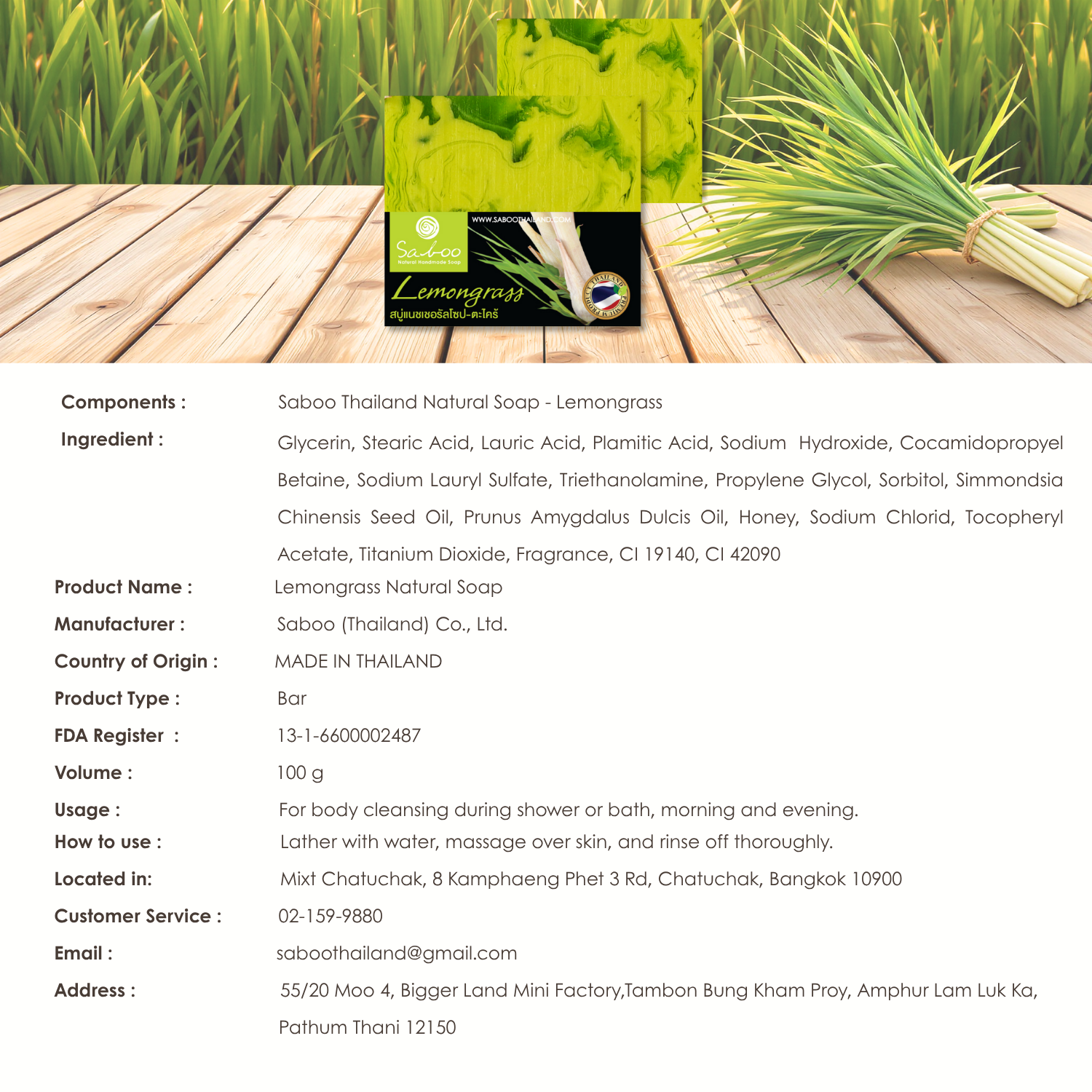 Lemongrass Natural Soap - Square Shape