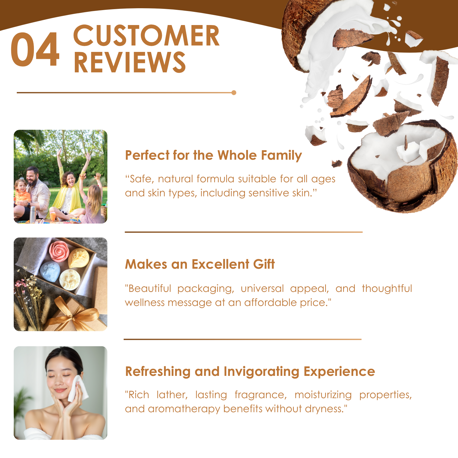 Our passion for natural skincare drives us to create handcrafted soaps using the finest ingredients, bringing you the rich essence of tropical coconut groves in every bar.