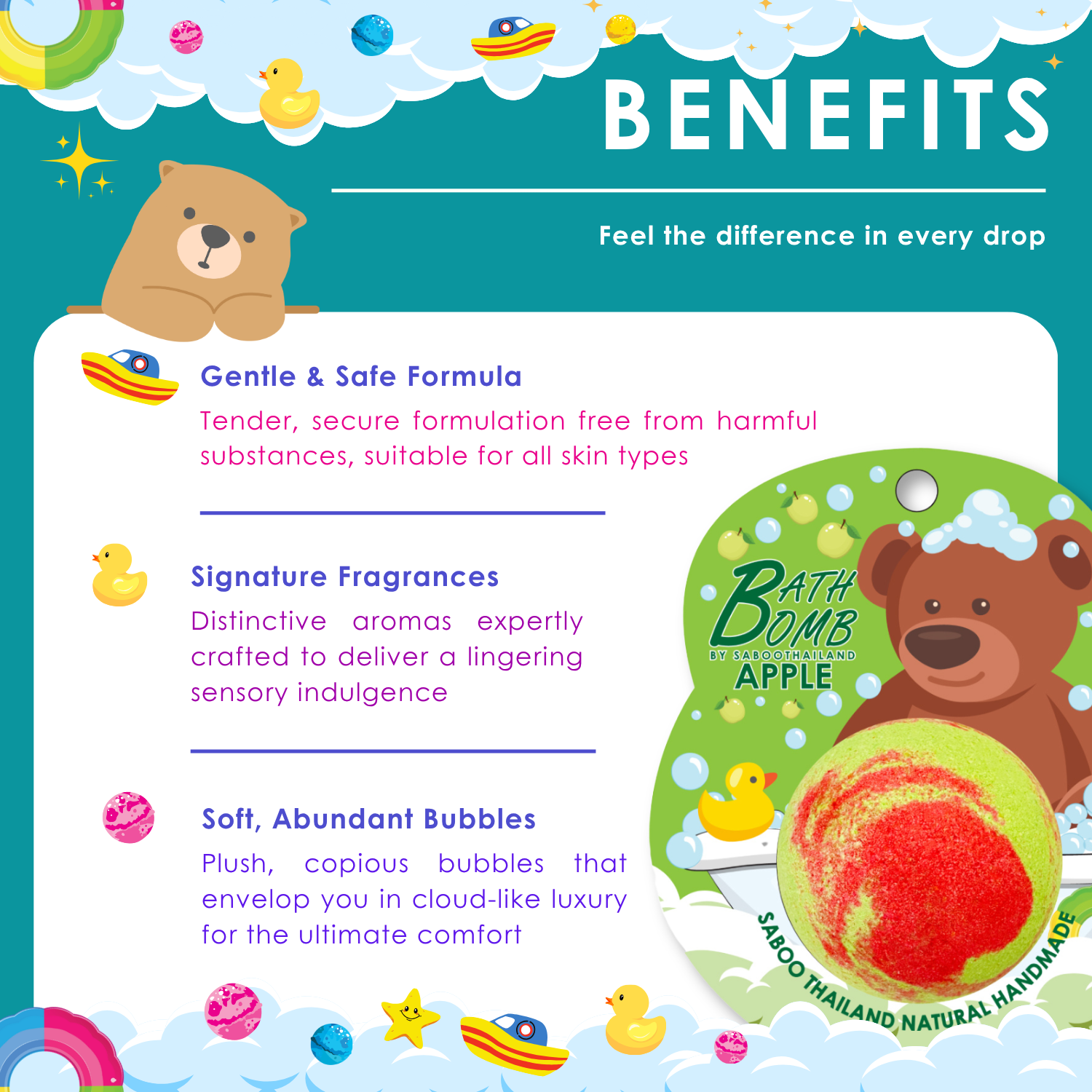 Bubble Bath Bomb - Bear Package - 150g - Apple