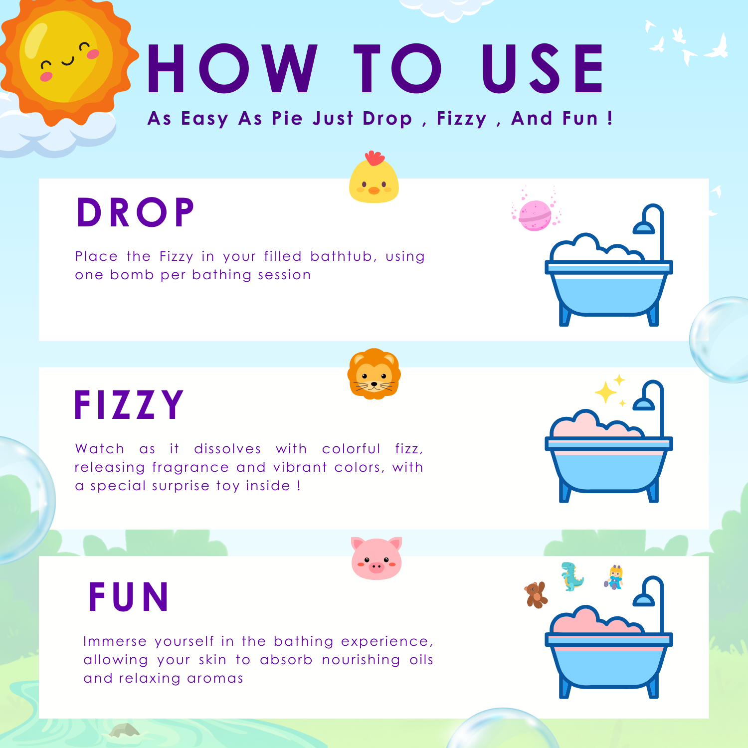 How to Use Fill bathtub with warm water. Drop bath bomb into water and enjoy the jumbo fizzing action and sweet floral fragrance.